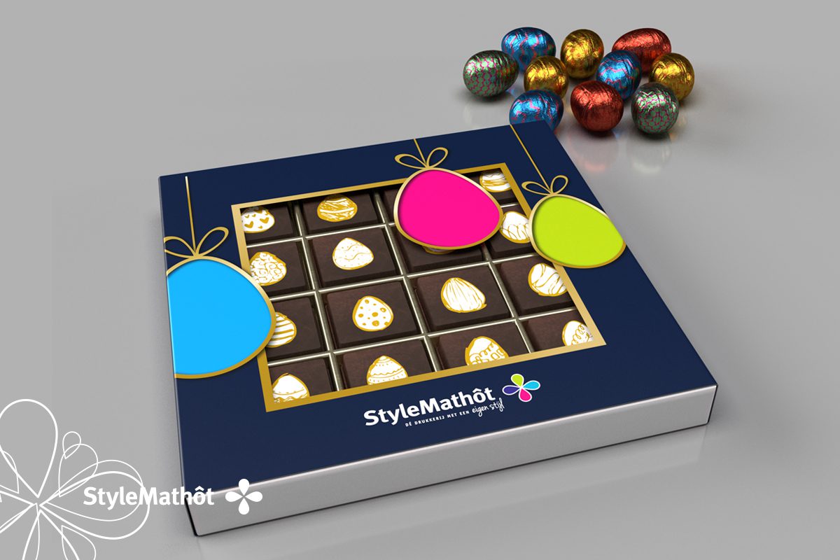 Met deze gepersonaliseerde doos vol chocolade geeft u kleine geluksmomenten cadeau. De sleeve én pralines kunnen worden bedrukt in uw huisstijl of thema. Verkrijgbaar per 4, 9 of 16 pralines per verpakking.